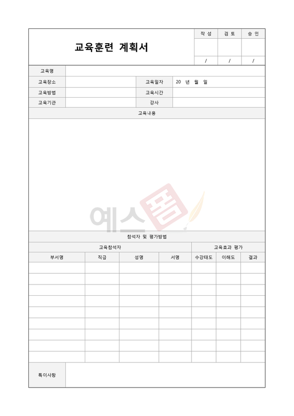 교육훈련 양식 서식.샘플 문서자료