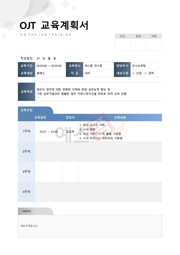 | OJT 교육계획서 | 교육훈련 계획서 | 교육훈련 계획서 (평가방법) |