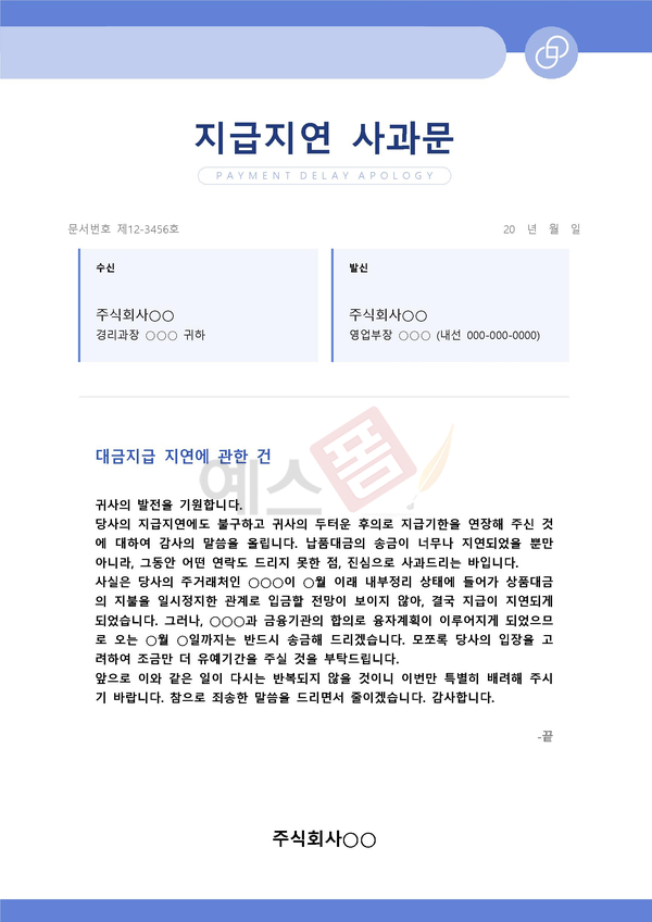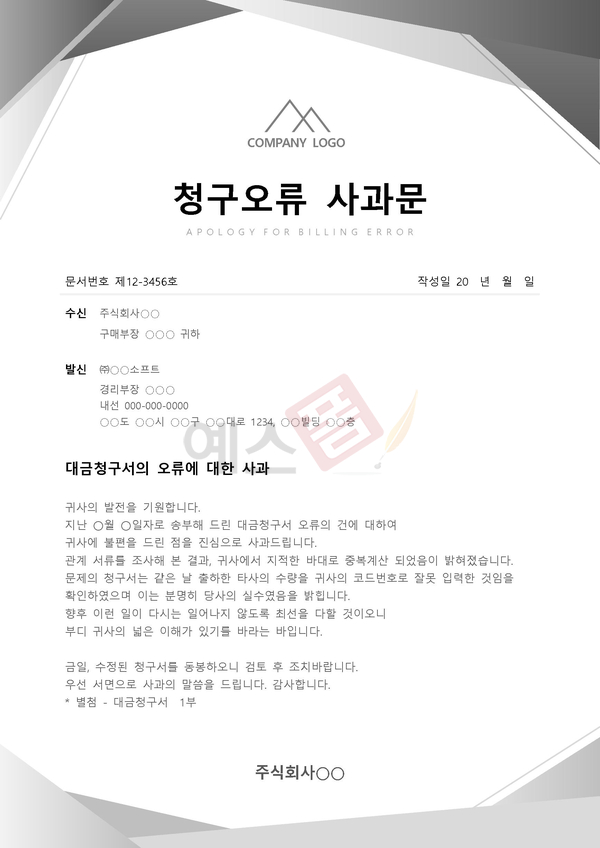 | 지급지연 사과문 | 청구오류 사과문 | 실언에 대한 사과문 |