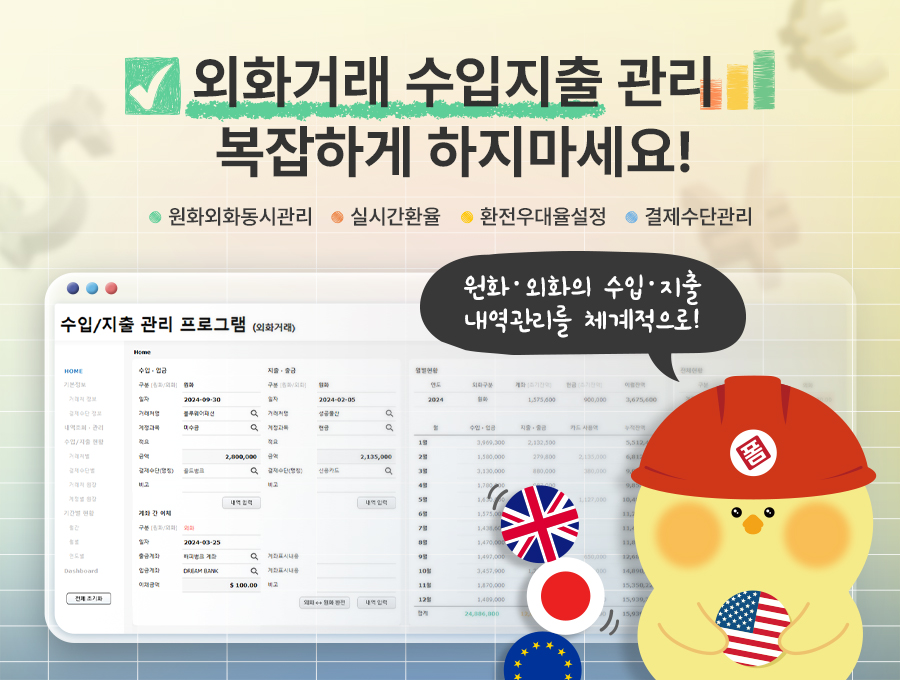 외화거래관리 프로그램은 원화와 외화의 수입, 지출을 관리하시는 분들을 위해