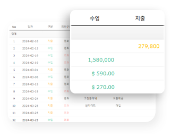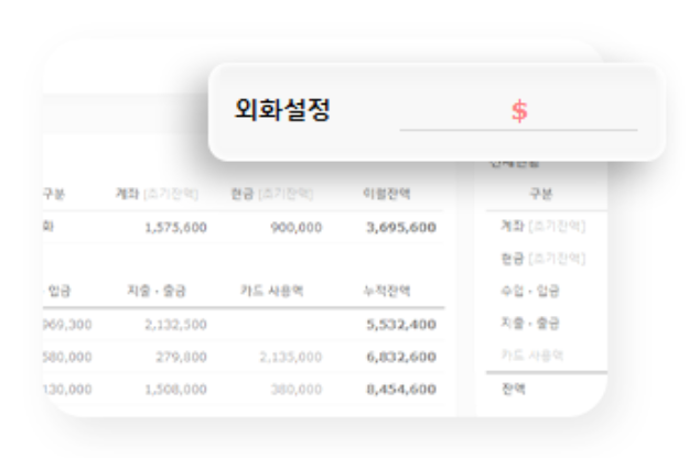 원화와 외화를 동시에 입력하고 관리할 수 있어요!