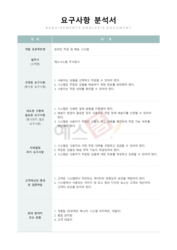 | 요구사항 리스트 | 요구사항 분석서 | 요구사항 정의서 |