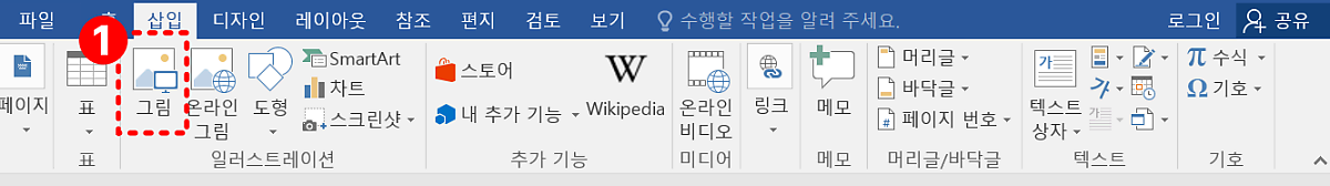 상단 메뉴에서 "삽입"을 클릭하고 "그림"을 선택하여 이미지를 추가합니다.
