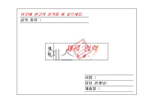 표지는 원고지와 같은 종류의 흰 종이를 사용한다. 표지에는 글의 제목, 글의 종류, 글쓴이의 소속과 성명 등을 쓴다. 경우에 따라서는 필요한 사항을 덧붙이거나 필요 없는 부분을 생략해도 된다.