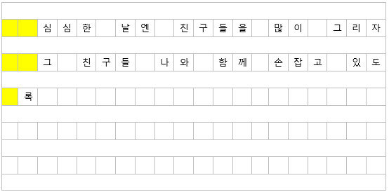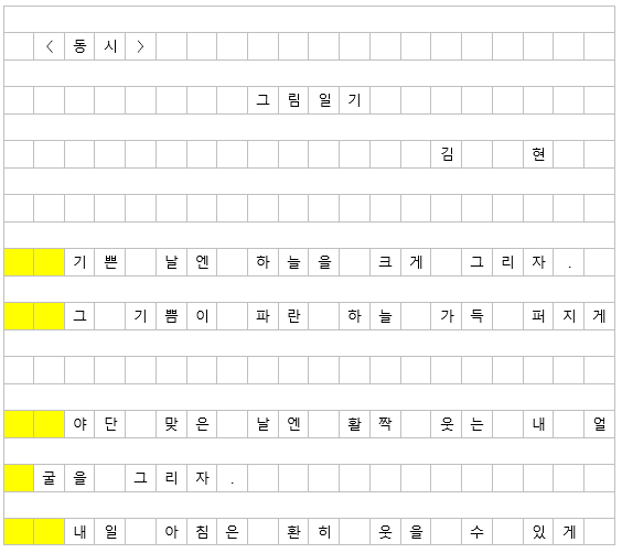 (나) 동시를 쓸 때는 각 줄마다 두 칸을 비우고 쓰는 것이 일반적이다.