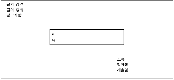 (가) 소속과 이름은 본래 제목 아래에 한 줄을 비우고 다음 두 줄에 쓰는 것이 원칙이나 보통은 제목 바로 다음 줄 오른쪽으로