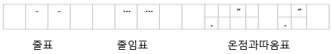 다. 줄임표는 가운데점 6개를 두 칸에 걸쳐 쓴다.