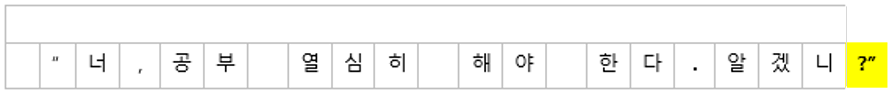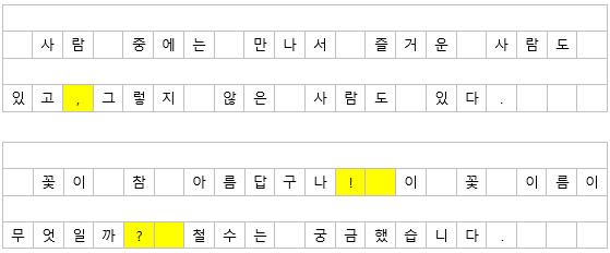 가. 반점이나 온점을 찍을 때는 바로 그다음 칸부터 쓴다.