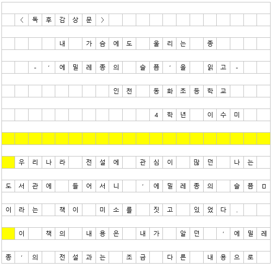 <독서감상문>, <생활문>처럼 표시한다.