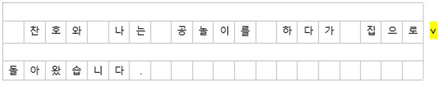 문장을 처음 시작 할 때는 항상 첫 칸을 비우고 둘째 칸부터 쓴다.