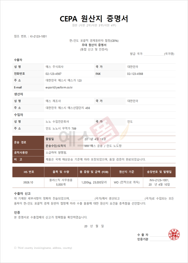 📝 CEPA 원산지증명서