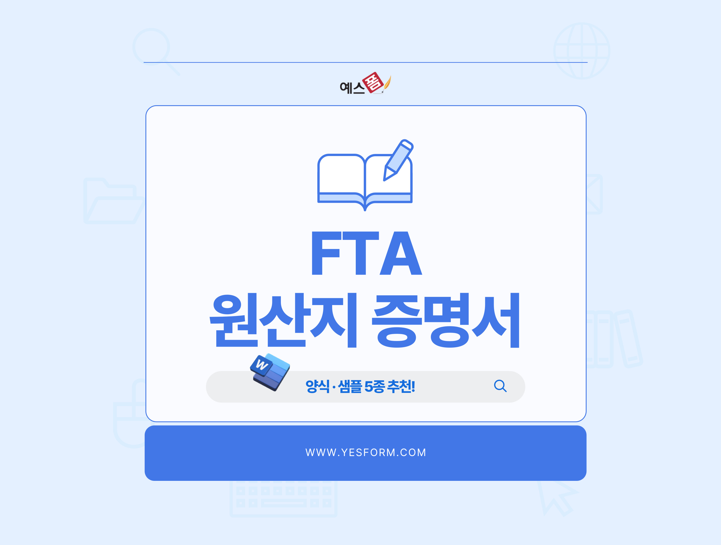 오늘은 예스폼에서 수출 기업들이 반드시 알아야 할 FTA 원산지증명서 양식을 소개드리겠습니다. 5가지 양식을 확인해 보시고, 샘플 내용도 참고하셔서 앞으로 변화될 통상환경에 조금이나마 도움 되길 바랍니다.