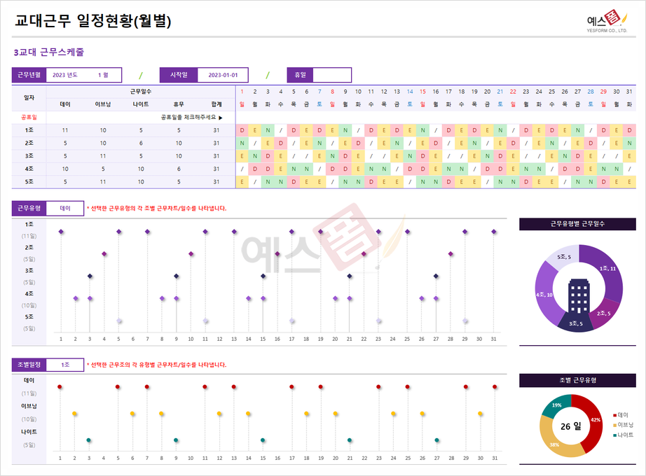 ▼▼예스폼 월별 교대근무 일정현황 엑셀템플릿▼▼