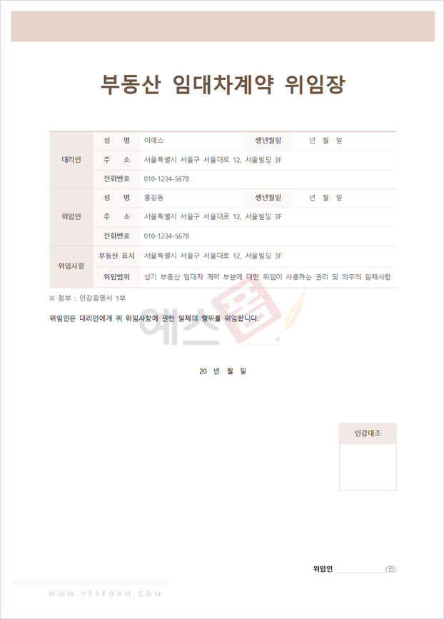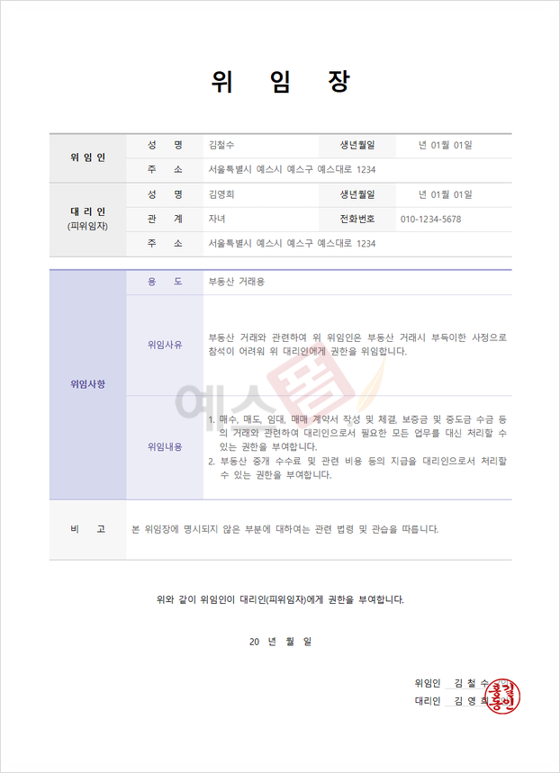 ✅ 예스폼 부동산 임대차계약 위임장