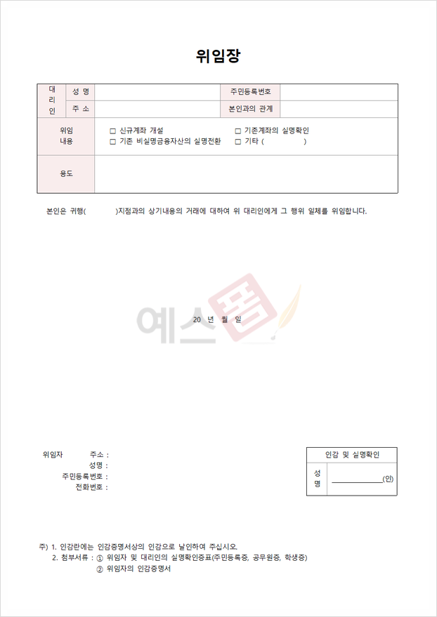 ✅ 예스폼 위임장(은행거래)