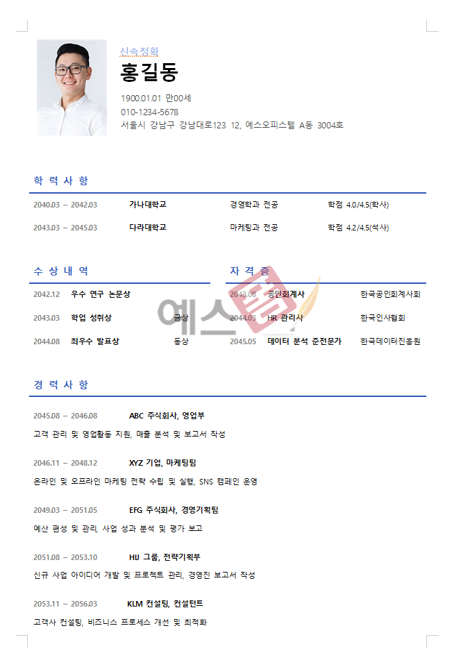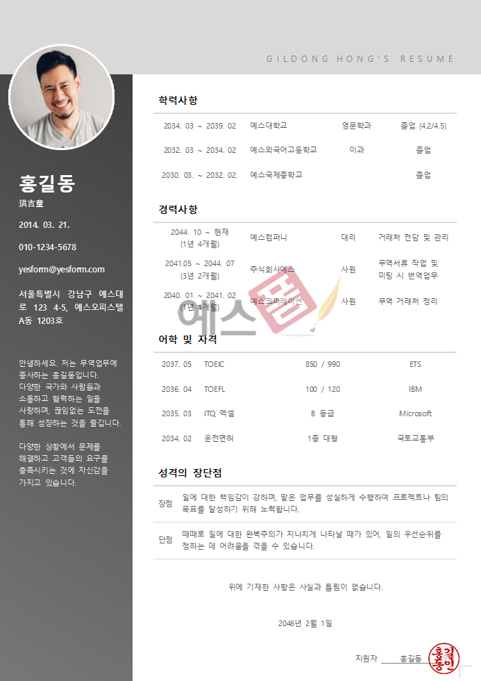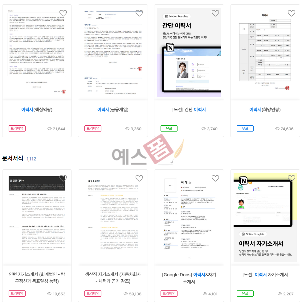 ⭐ 예스폼 이력서 양식 베스트5 소개