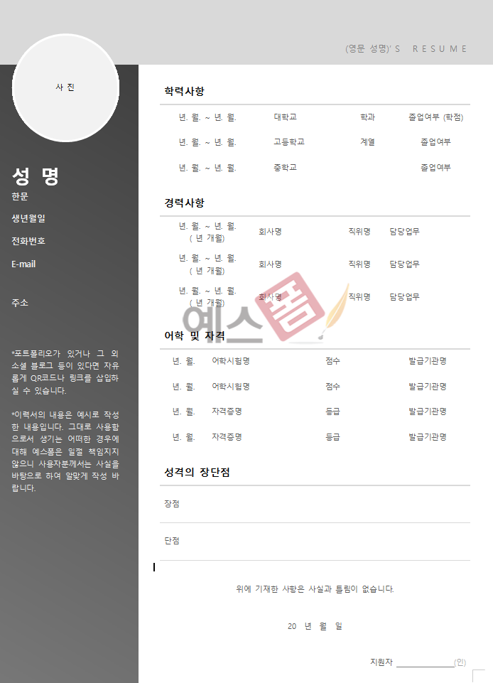 🚀 예스폼으로 완성하는 완벽한 이력서