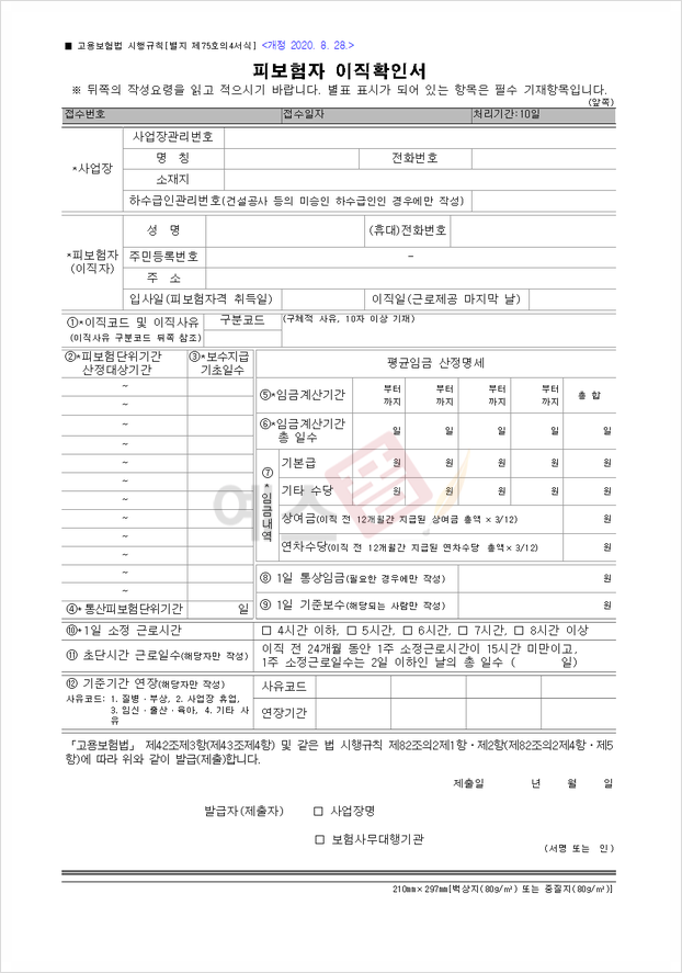 피보험자 이직확인서 작성 방법?