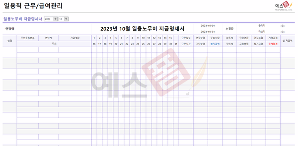 ▼▼예스폼 일용직 근무/급여 관리 프로그램 바로가기▼▼