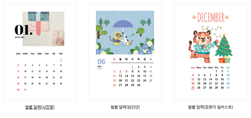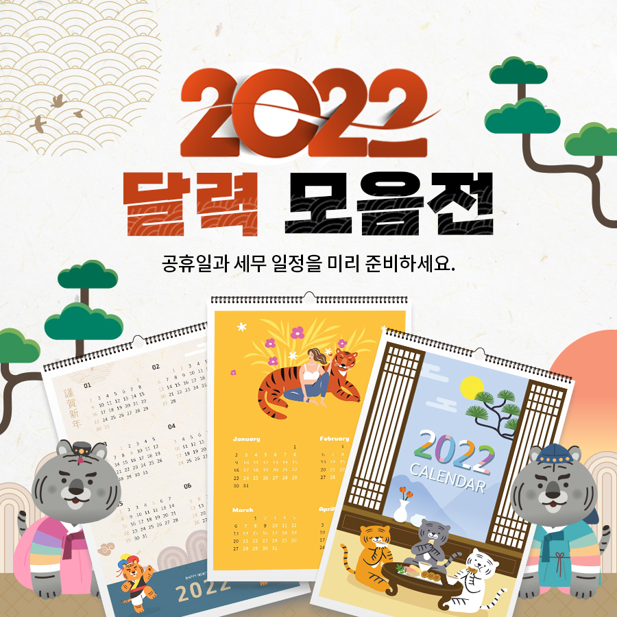 2022년 호랑이 일러스트가 삽입된 달력부터 심플하게 디자인된 달력까지