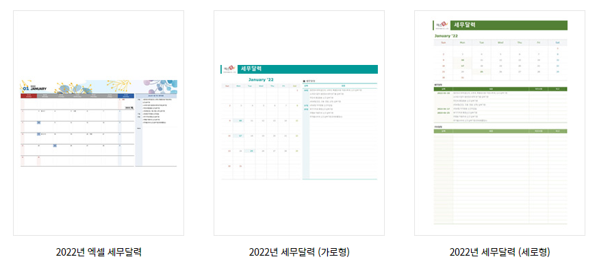 2022년의 주요 세무 일정이 담겨있는 엑셀 달력 모음집입니다.