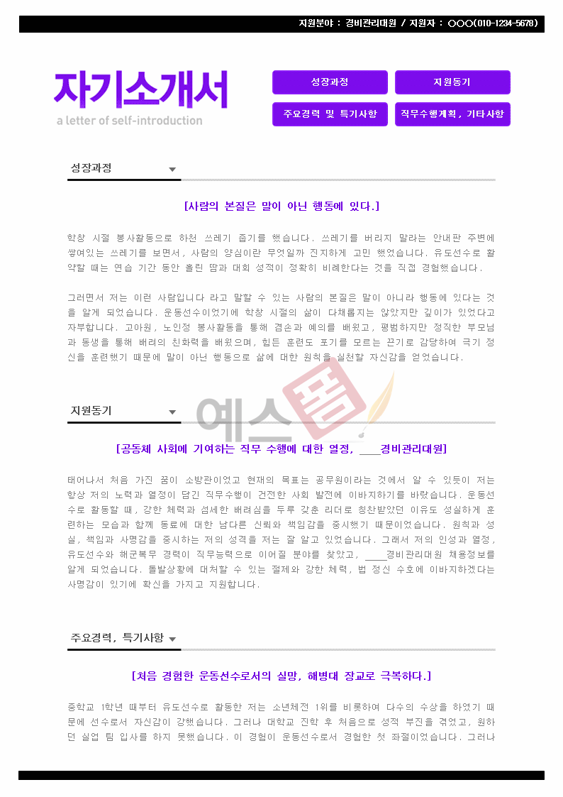 전문가 자기소개서 (법원행정처/법원경비관리대원) - 신입, 남, 대졸 |