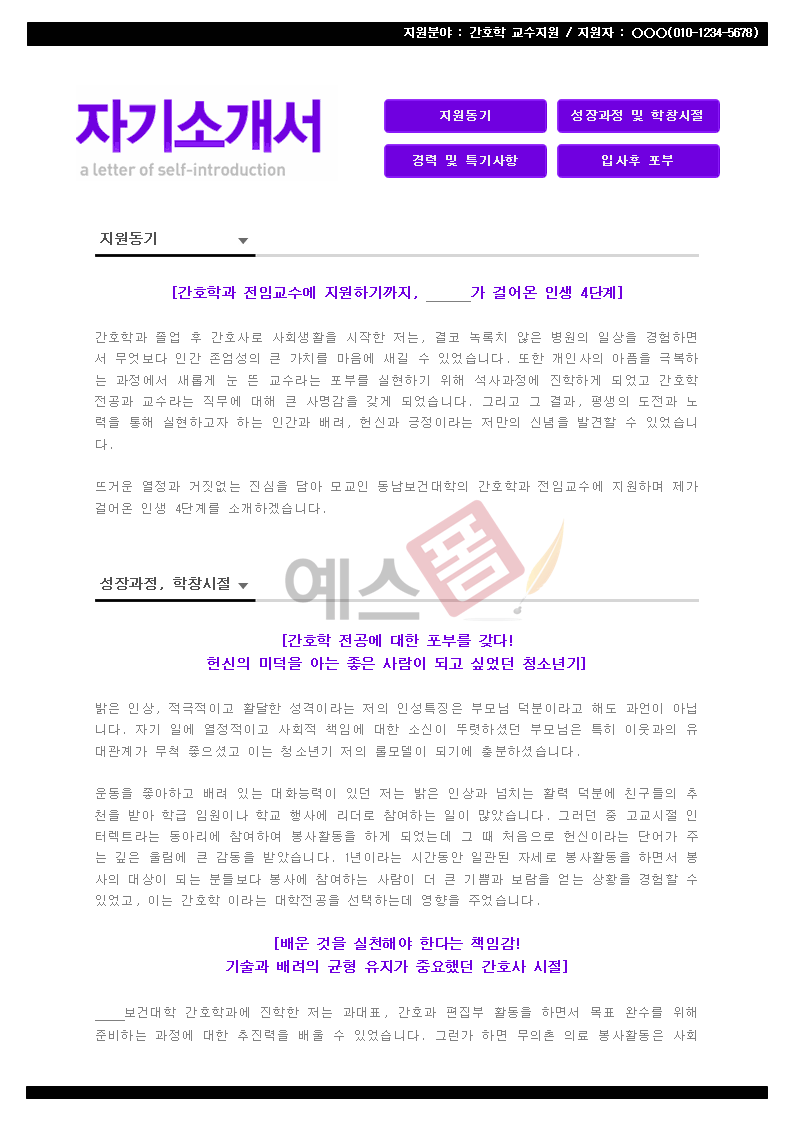 전문가 자기소개서 (동남보건대학/간호학과교수) -경력, 여, 석박사 |
