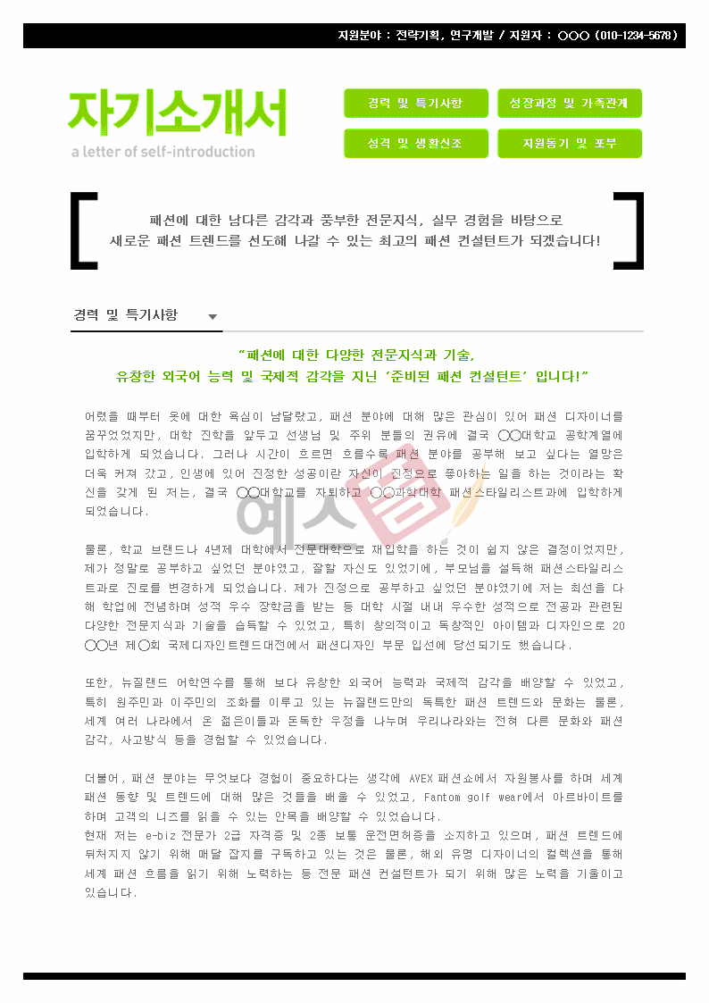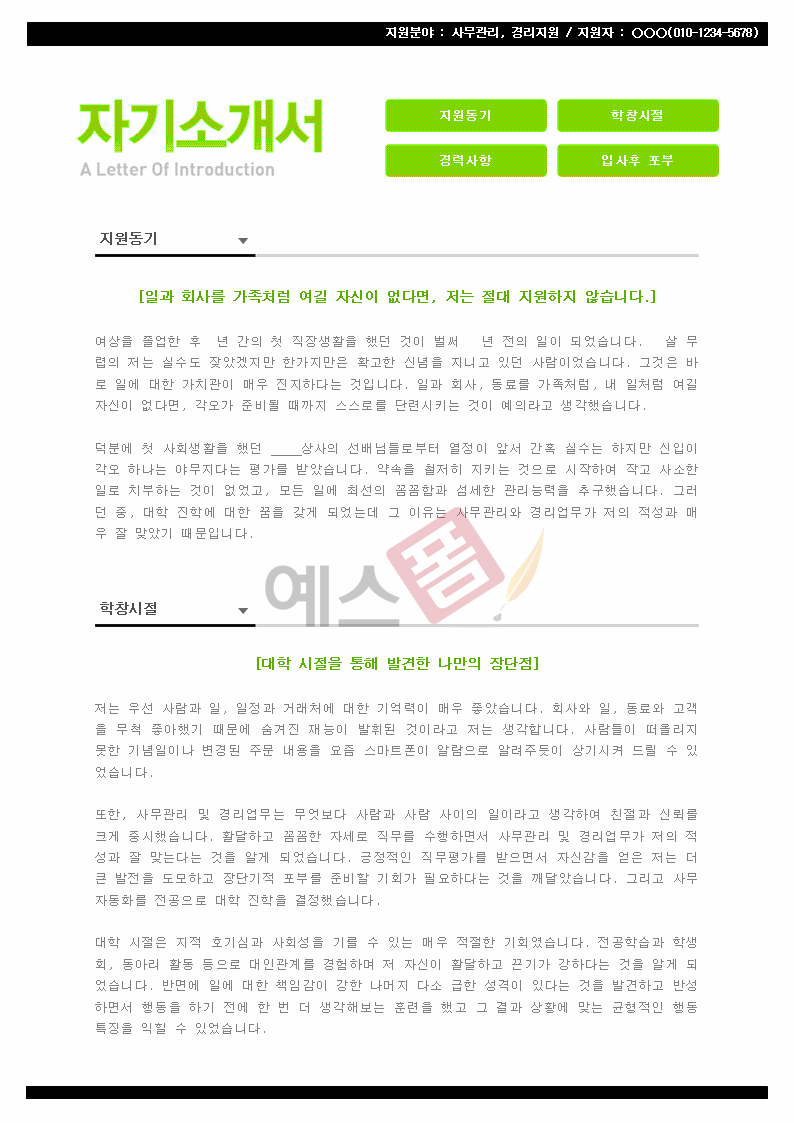 자소서 샘플양식이력서·자기소개서 > 자기소개서 - 예스폼 이력서·자기소개서