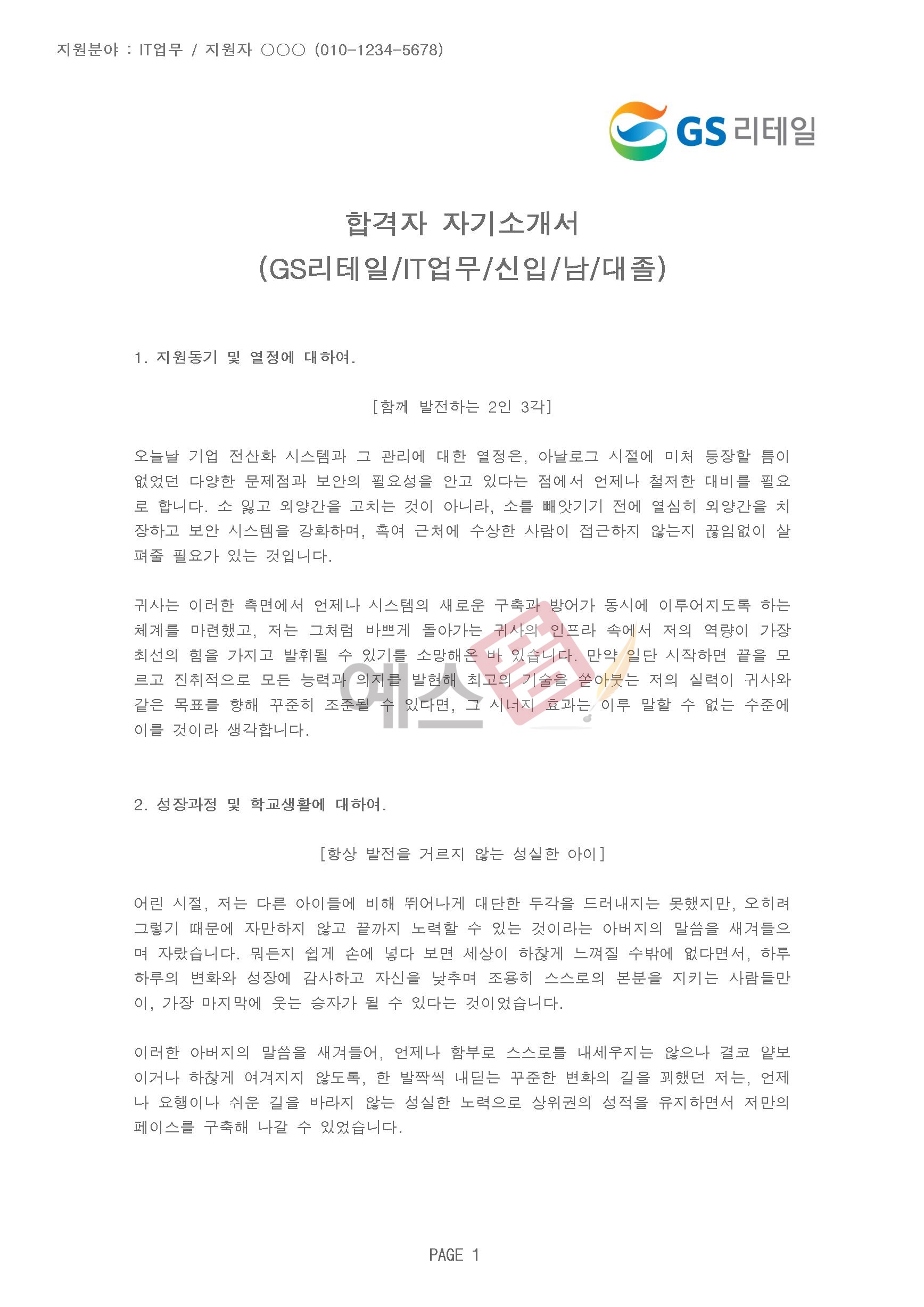 | 합격자 자기소개서 (GS리테일/IT업무) - 신입, 남, 대졸 |