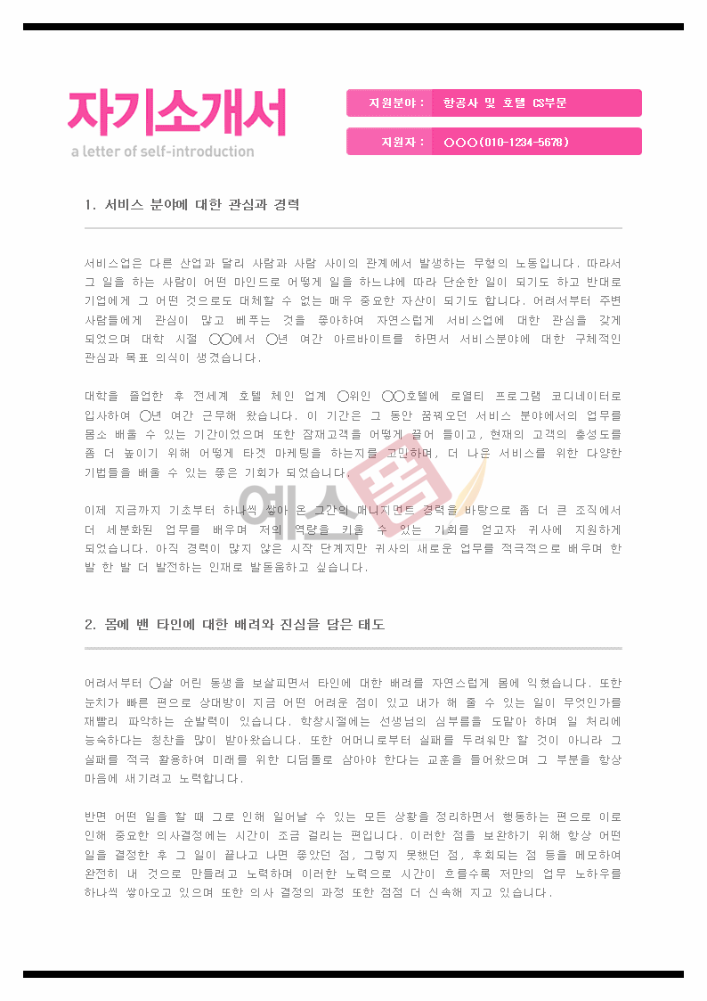 | 전문가 자기소개서 (서비스업) - 경력, 여, 대졸 |