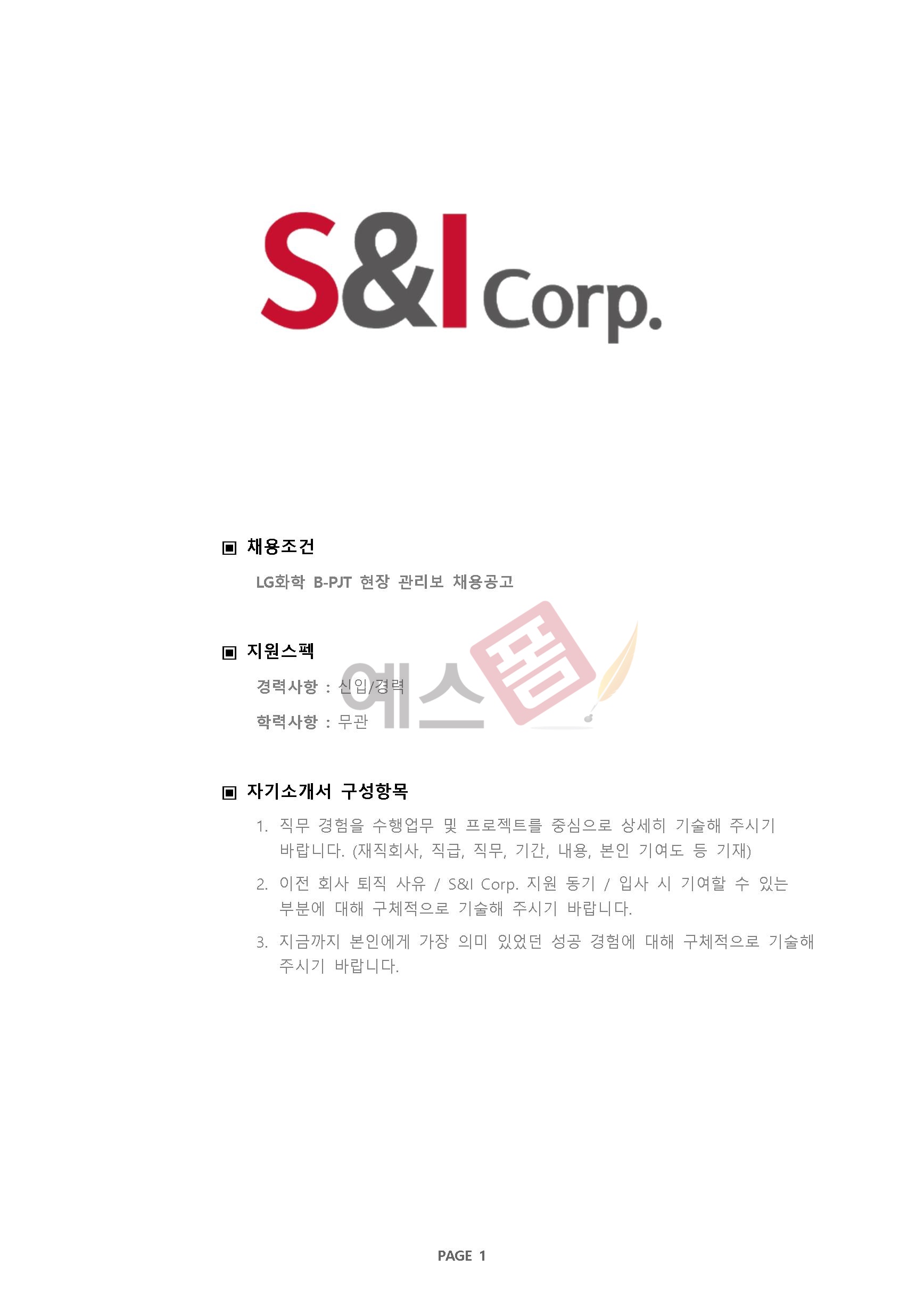 기업별 공채 자기소개서 (S&I Corp) 신입/경력, 무관 |