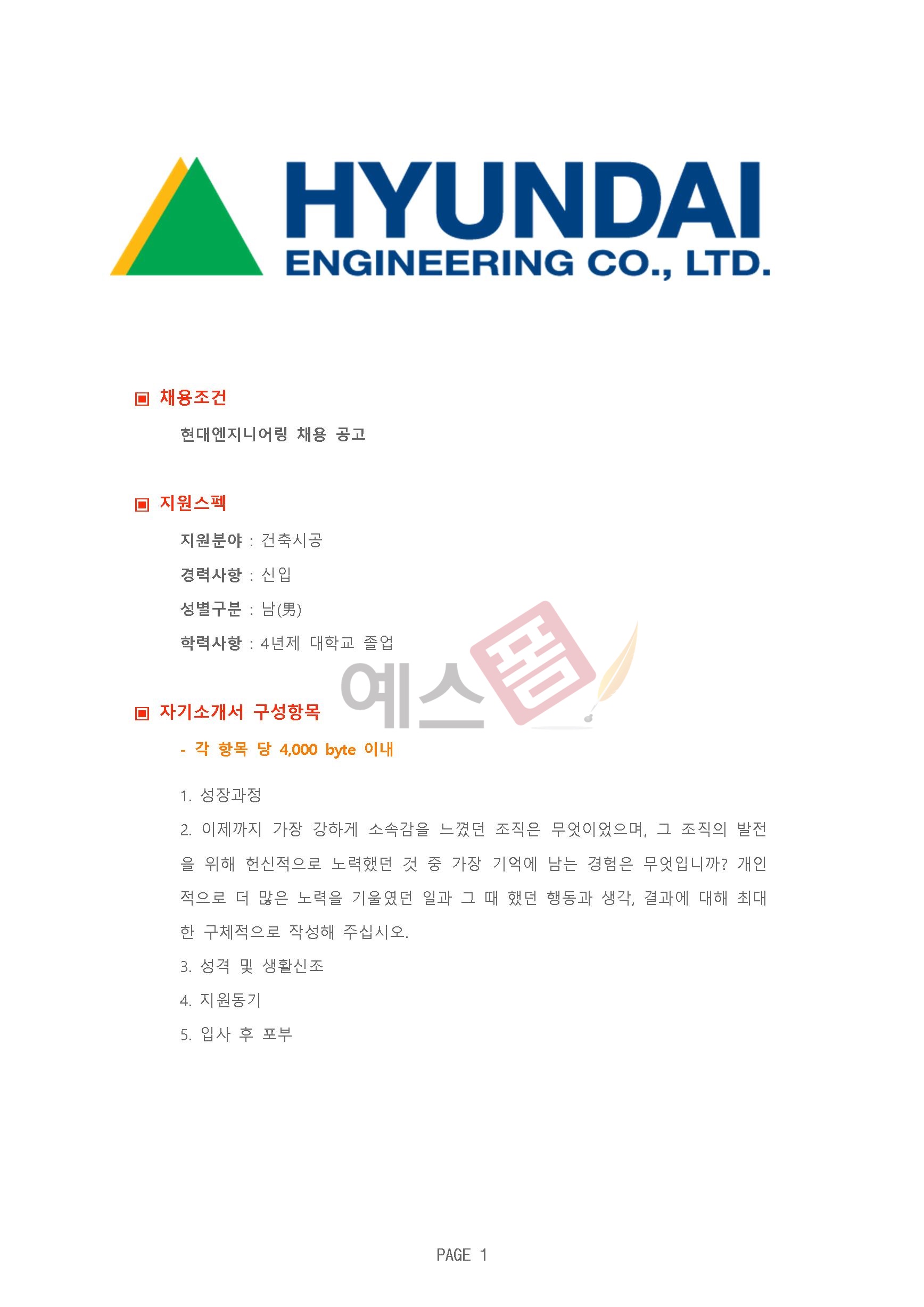 기업별 공채 자기소개서 (현대엔지니어링/건축시공) |