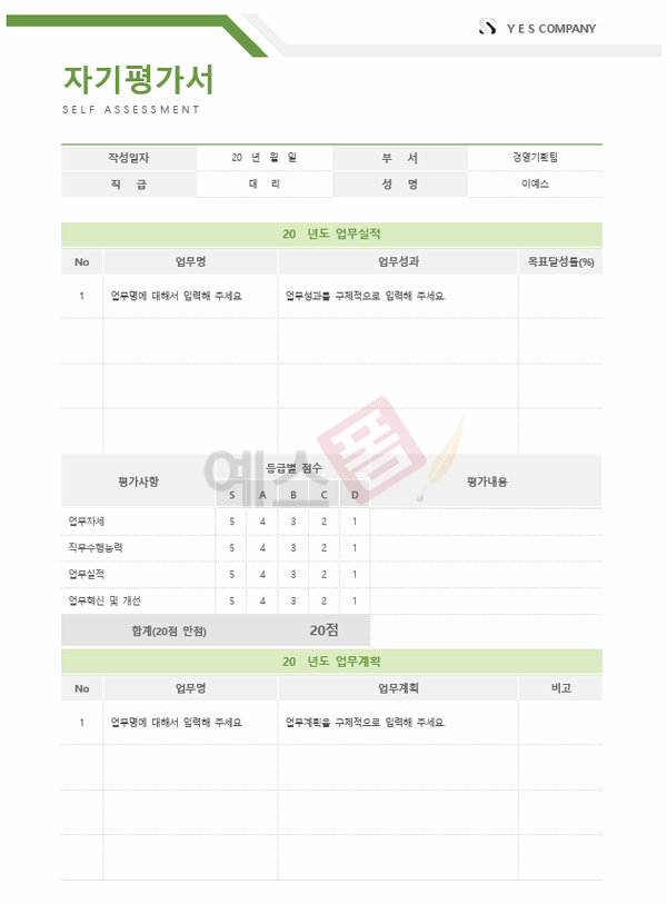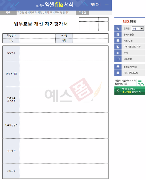 업무효율개선 자기평가서 - 예스폼 엑셀서식
