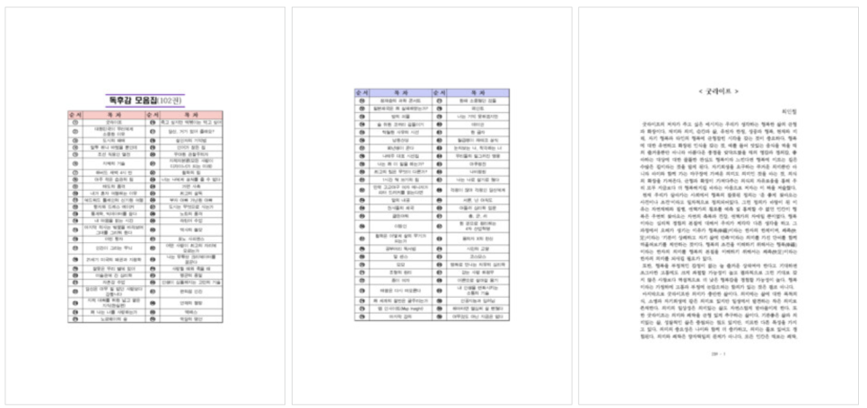 한 번쯤 경험해 봤을 독후감상문 과제는 소설, 시, 희곡 등 다양한 문학 작품을 읽고 그에 대한 자신의 생각을 글로 표현해야 하는데요. 책의 내용을 어떻게 해석해야 할지 모르거나 자신의 생각을 글로 표현하는 것이 어렵다면 어디서부터 어떻게 시작해야 할지 막막하기 마련입니다. 작품 분석은 물론 자신만의 독창적인 해석까지 요구되니 부담스러울 수밖에 없는데요. 이럴 때 다른 사람이 작성한 독후감상문을 참고해 보는 건 어떨까요?