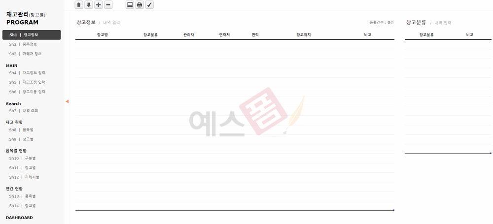 재고관리(창고별) Program (창고별 재고관리, 창고/물류관리, 입고출고) - 예스폼 엑셀서식