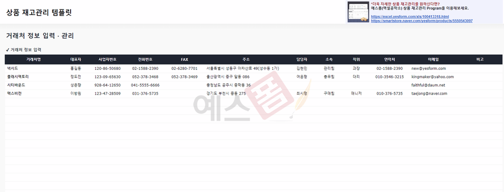 상품 재고관리 템플릿 구글 스프레드시트 - 예스폼 엑셀서식