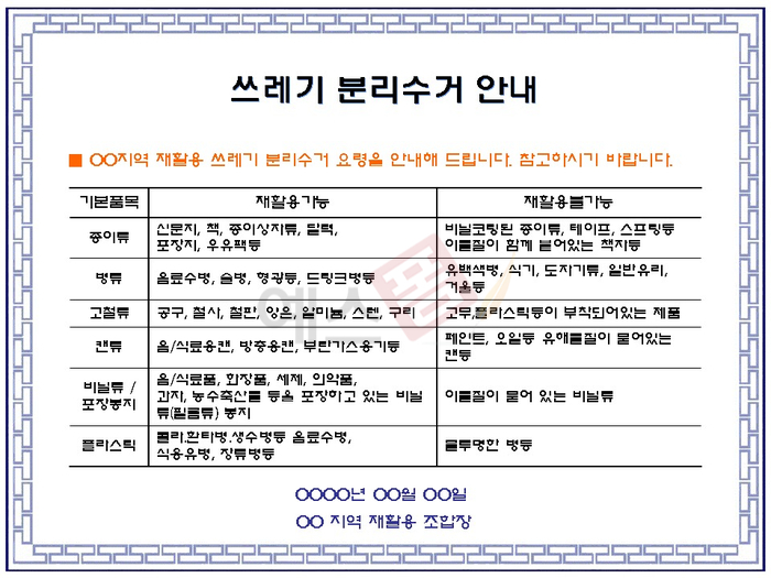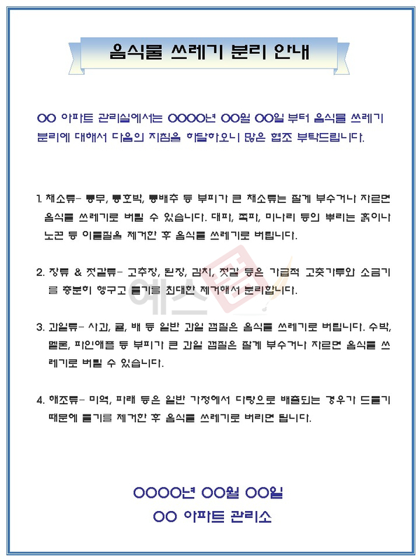 | 음식물 쓰레기 분리수거 안내 | 재활용 쓰레기 분리수거 안내 | 분리수거에 대한 협조문 |