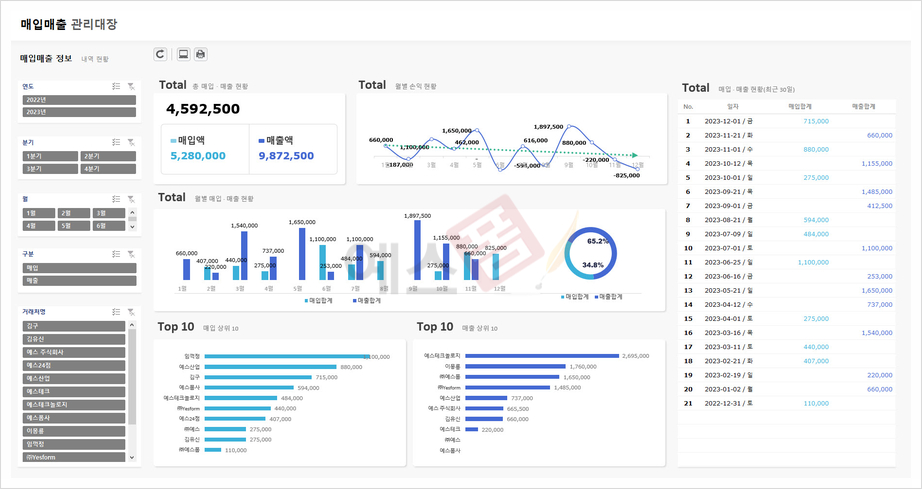 [피벗테이블] 매입매출 관리대장 - 예스폼 엑셀서식