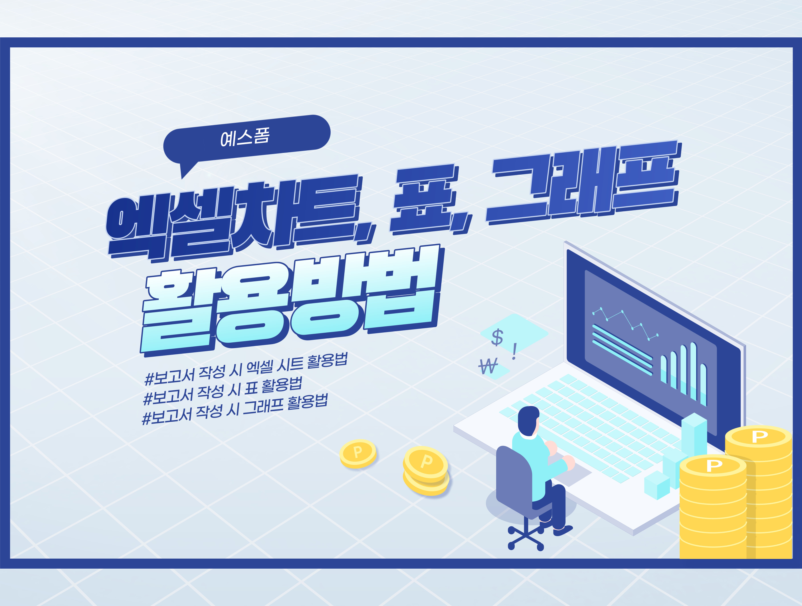 보고서를 작성할 때는 상대방이 읽을 때 이해하기 쉽도록 데이터가 있다면 글자보단 수치나 추이를 이용한 다양한 그래프, 엑셀 차트, 표를 사용하여 만드는 것이 좋은데요. 그 데이터에 알맞은 차트를 활용하면 시각화하는데 큰 도움을 주지만 기본적으로 어떤 데이터에 어떤 차트를 넣어야 하는지 모르고 있다면 시간도 오래 걸리고 비효율적이라 실무에 큰 도움이 되지 못할 수도 있습니다.