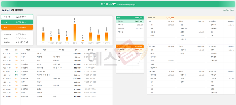 가계부 관리대장 - 예스폼 엑셀서식