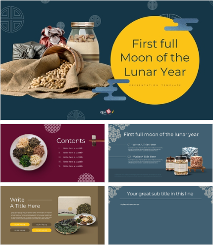 정월대보름 (전통, 문화) 배경 PPT 정월대보름 (Food) 피피티 표지 정월대보름 (전통문화) PPT 배경 템플릿