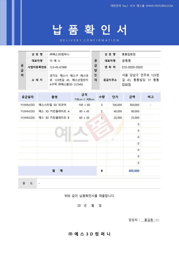 여기까지 예스폼에서 납품확인서 작성요령 및 양식에 대해서 알아보았습니다.