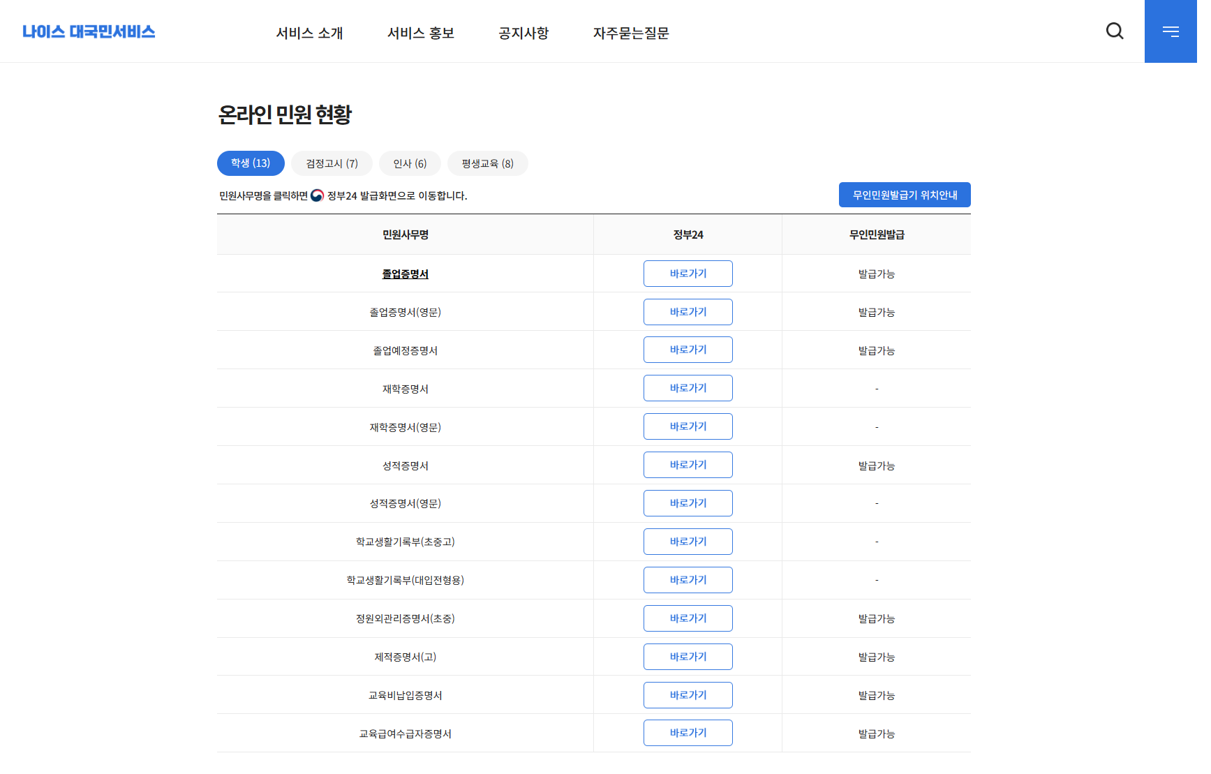 | 고등학교 | 정부24, 나이스 대국민서비스 | ⭕ 가능 (1981년 이후 졸업생) | 무료 발급, PDF 저장 가능 |