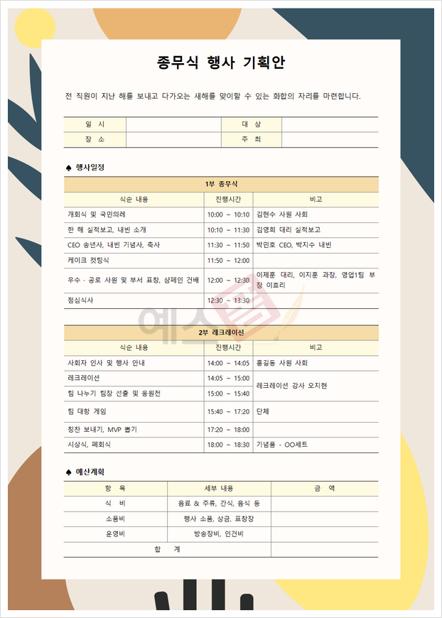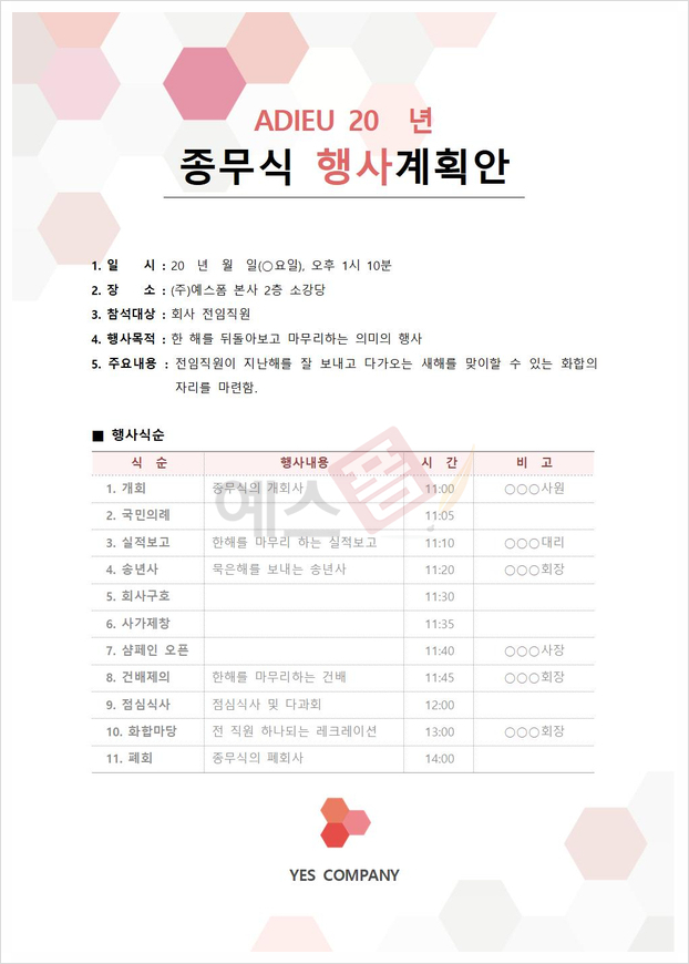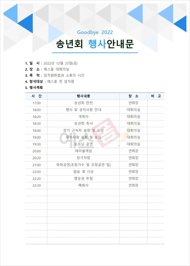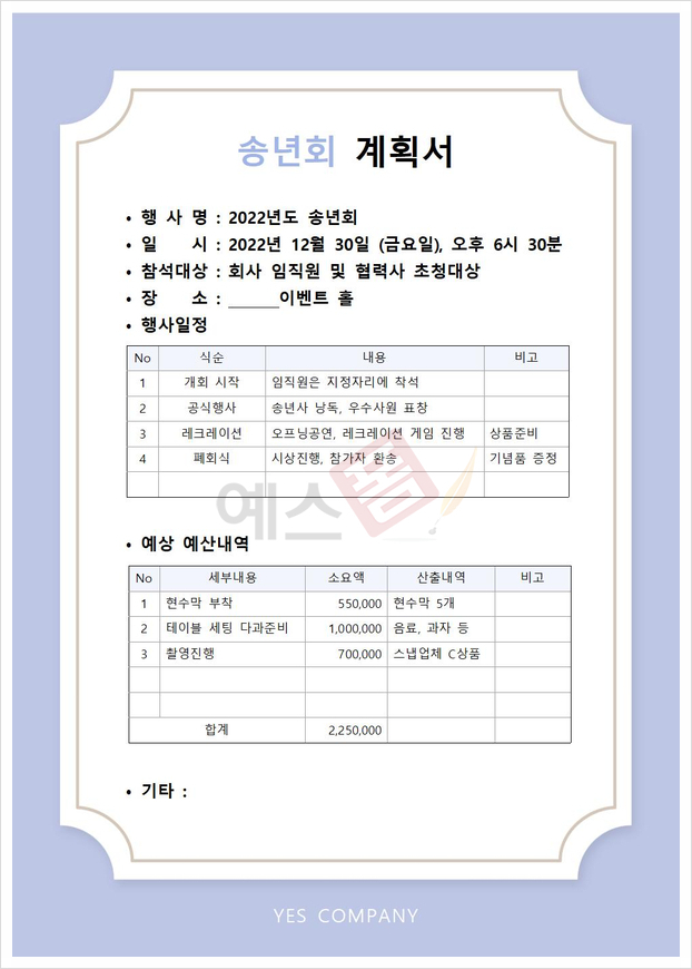 예스폼 서식으로 즐거운 송년 행사를 계획해보세요!