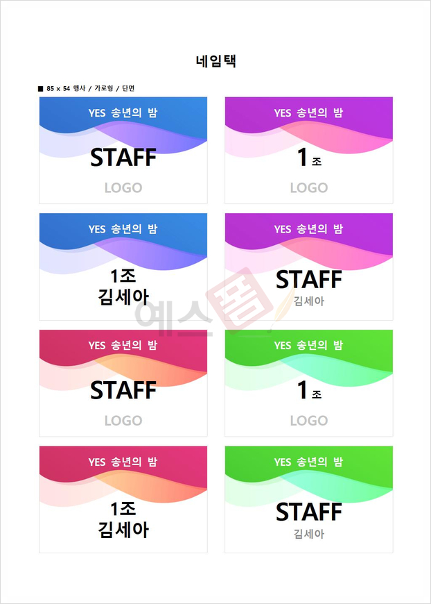 | 종무식 좌석배치도 | 송년의 밤 네임택 | 종무식 롤링페이퍼 |