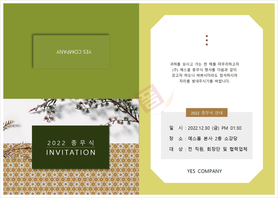 | 종무식 초대장 (카드형) | 행사 초대장 (송년의 밤) |