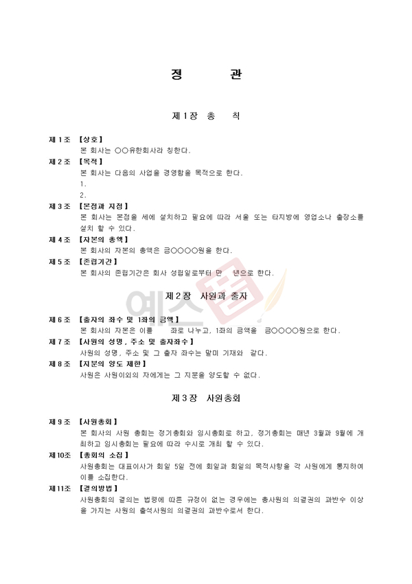 | 2022년 회사표준사규집 | 주식회사 표준정관 | 유한회사 정관 |