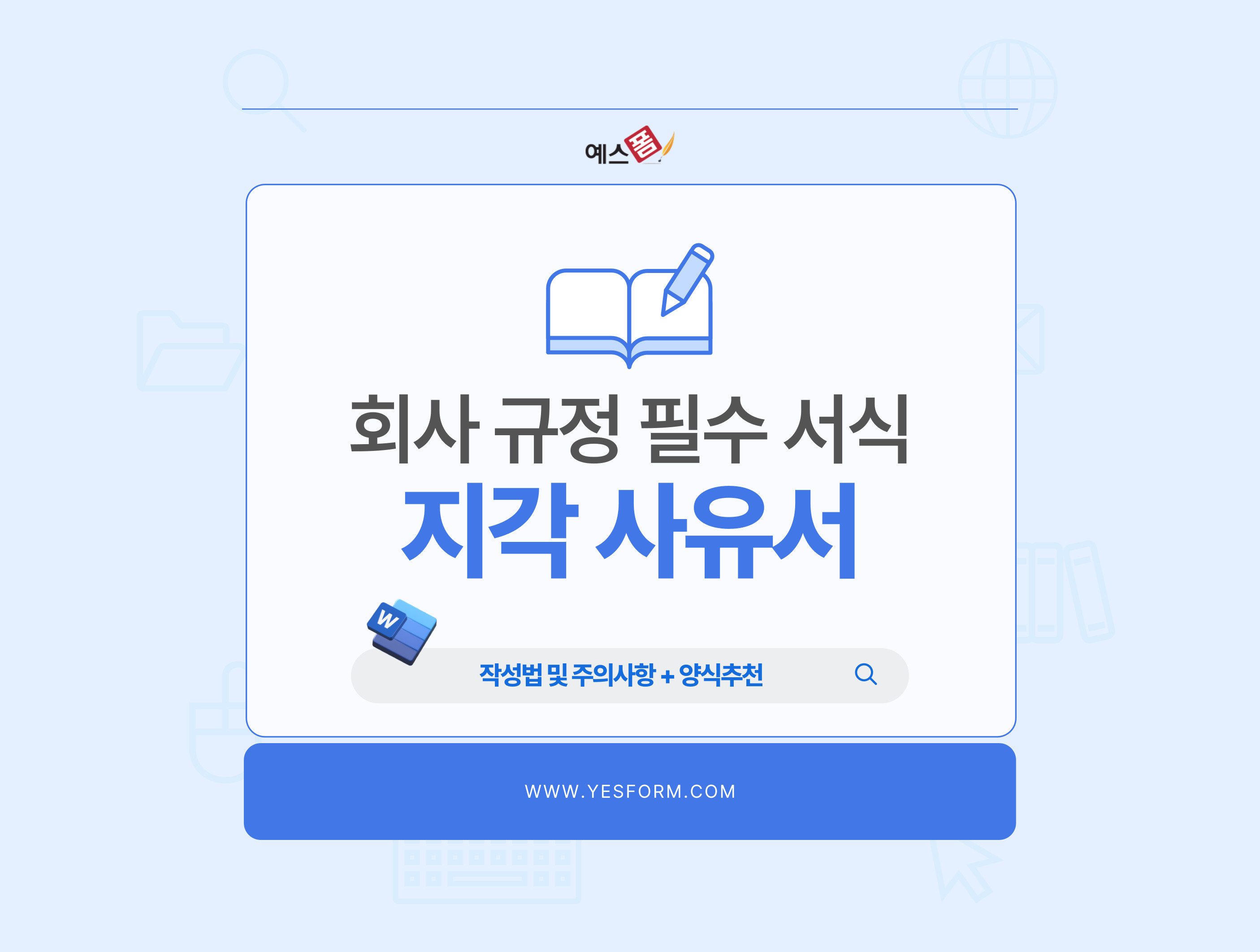 오늘 소개드린 시말서 양식 경위서 양식 외에도 예스폼에서는 다양한 시말서 예시 사유서 예시가 작성되어 있는 양식을 제공하고 있습니다. 원하는 목적에 맞춰 다양한 사유서 양식 경위서 양식 시말서 양식 등을 다운로드해 보시길 바라며, 오늘 안내드린 사유서 작성법과 주의사항을 참고 삼아 올바르게 사유서를 작성하여 보시길 바랍니다.
