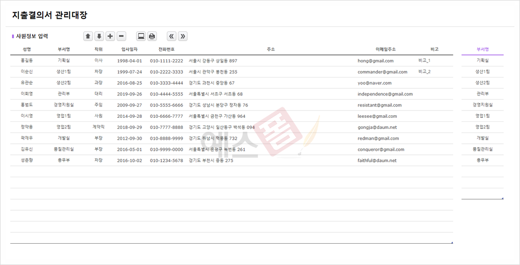 지출결의서 엑셀 프로그램 보러 가기