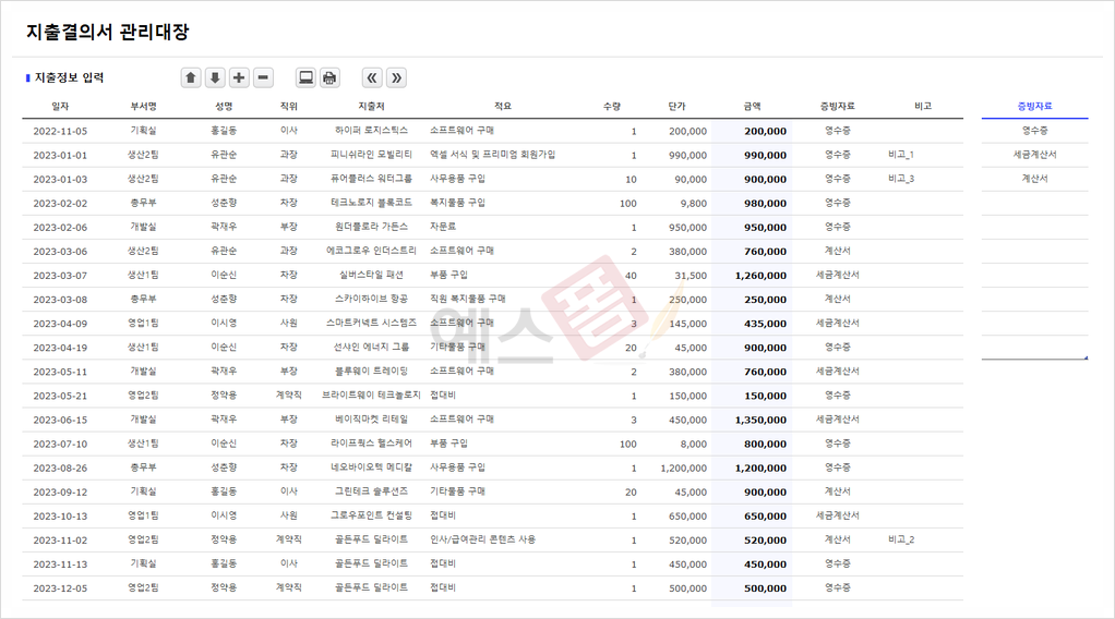 지출결의서 간편작성 엑셀프로그램(지출품의서 작성, 자동저장/검색, 연간 지출관리) - 예스폼